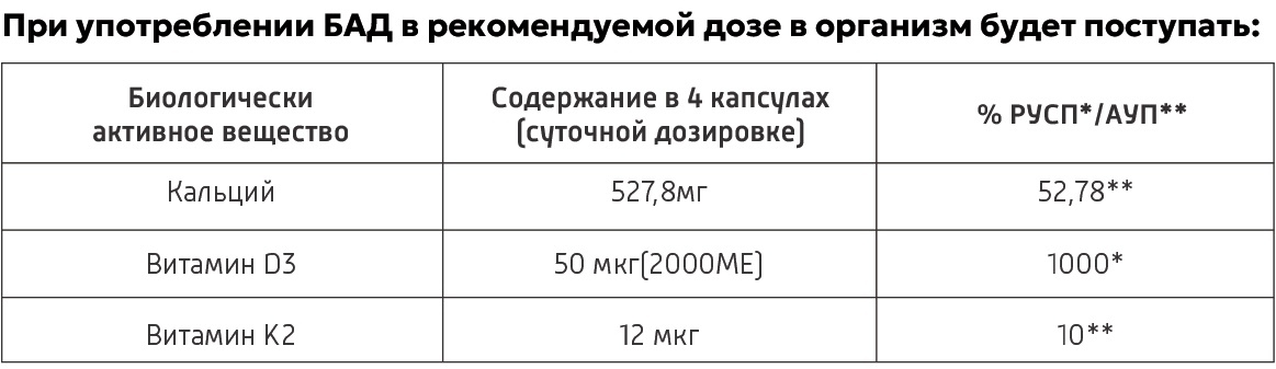 Легкодоступный кальций в хелатной форме для максимального усвоения. Способствует укреплению костной ткани, ногтей, волос, замедляет старение. Усилен витаминами Д3 и К2, восполняет дефицит кальция без побочных эффектов со стороны ЖКТ, так не влияет на уровень кислотности желудка.