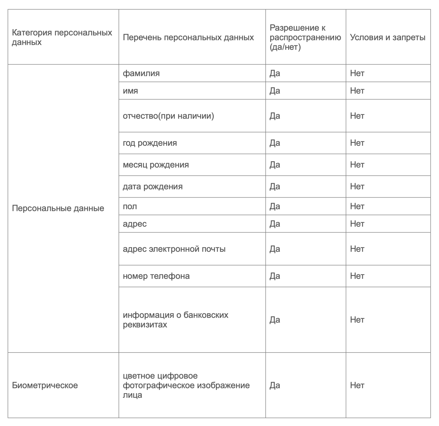 12. Перечень персональных данных: