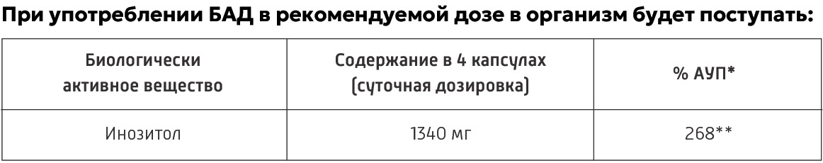 Участвует в поддержании баланса половых гормонов, в регуляции менструального цикла, способствует восстановлению чувствительности рецепторов к инсулину и играет важную роль в процессе созревания яйцеклетки.