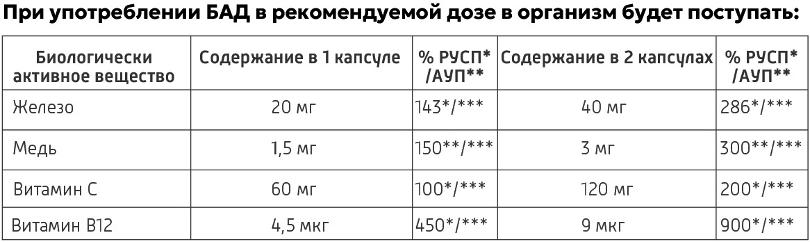 Рекомендована для поддержания в норме уровня гемоглобина и ферритина, снижения риска развития анемии, повышения иммунитета энергии и работоспособности.