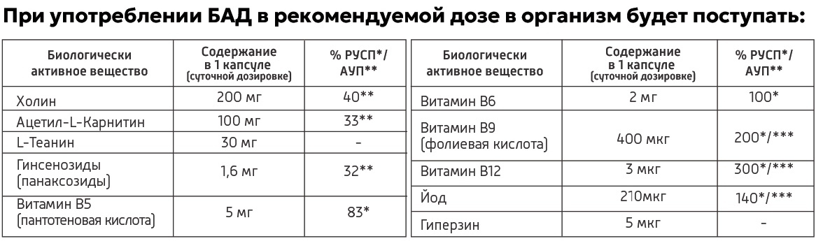 В основе комплекса уникальная комбинация ингредиентов, которые обеспечивают синергетический эффект для улучшения мозговой деятельности, поддержки когнитивной функции и профилактики возрастных изменений. Способствует улучшению памяти и внимания, повышает концентрацию, защищает организм от негативного влияния стресса.